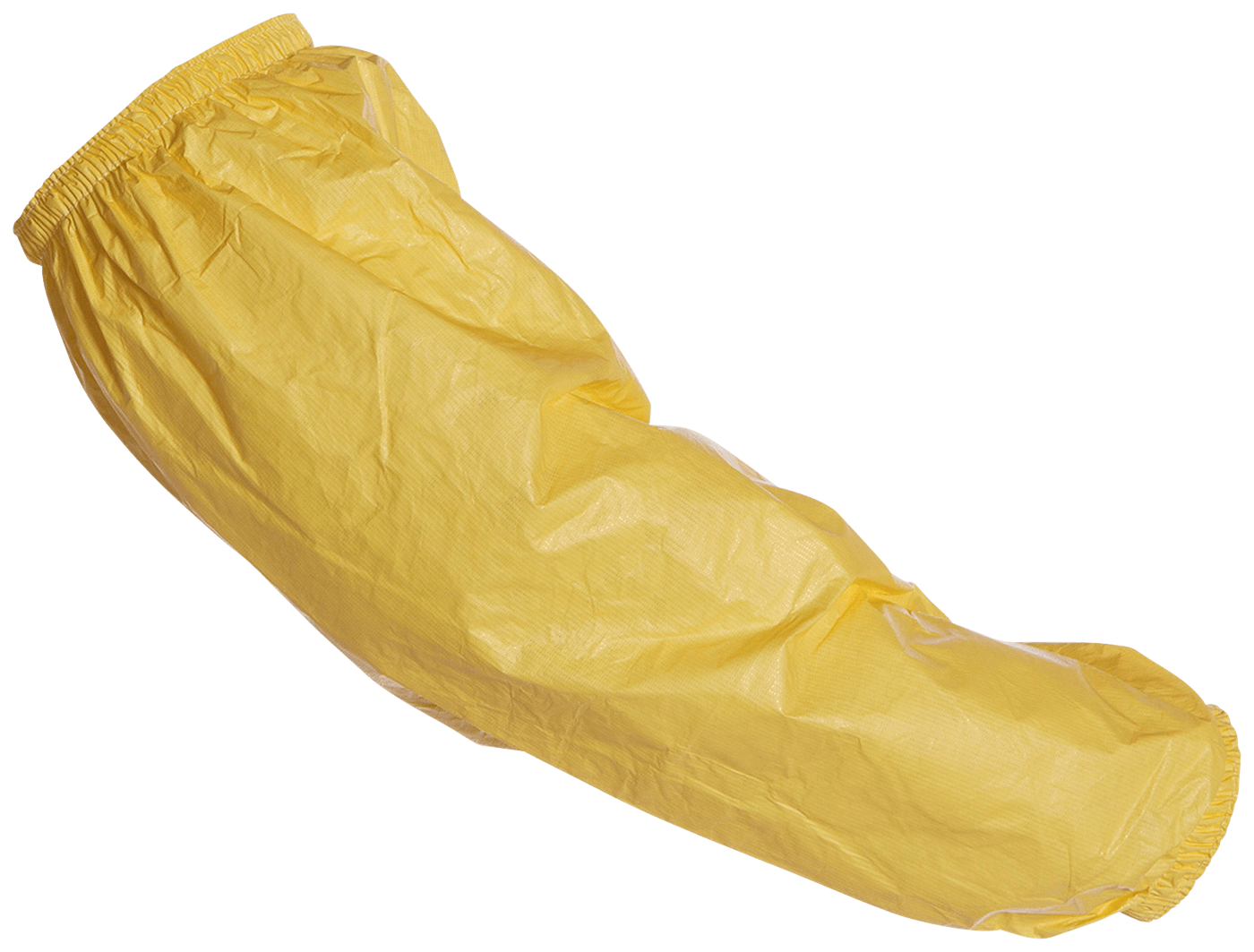 Ärmskydd Tychem C av en polymer barriärbeläggning.