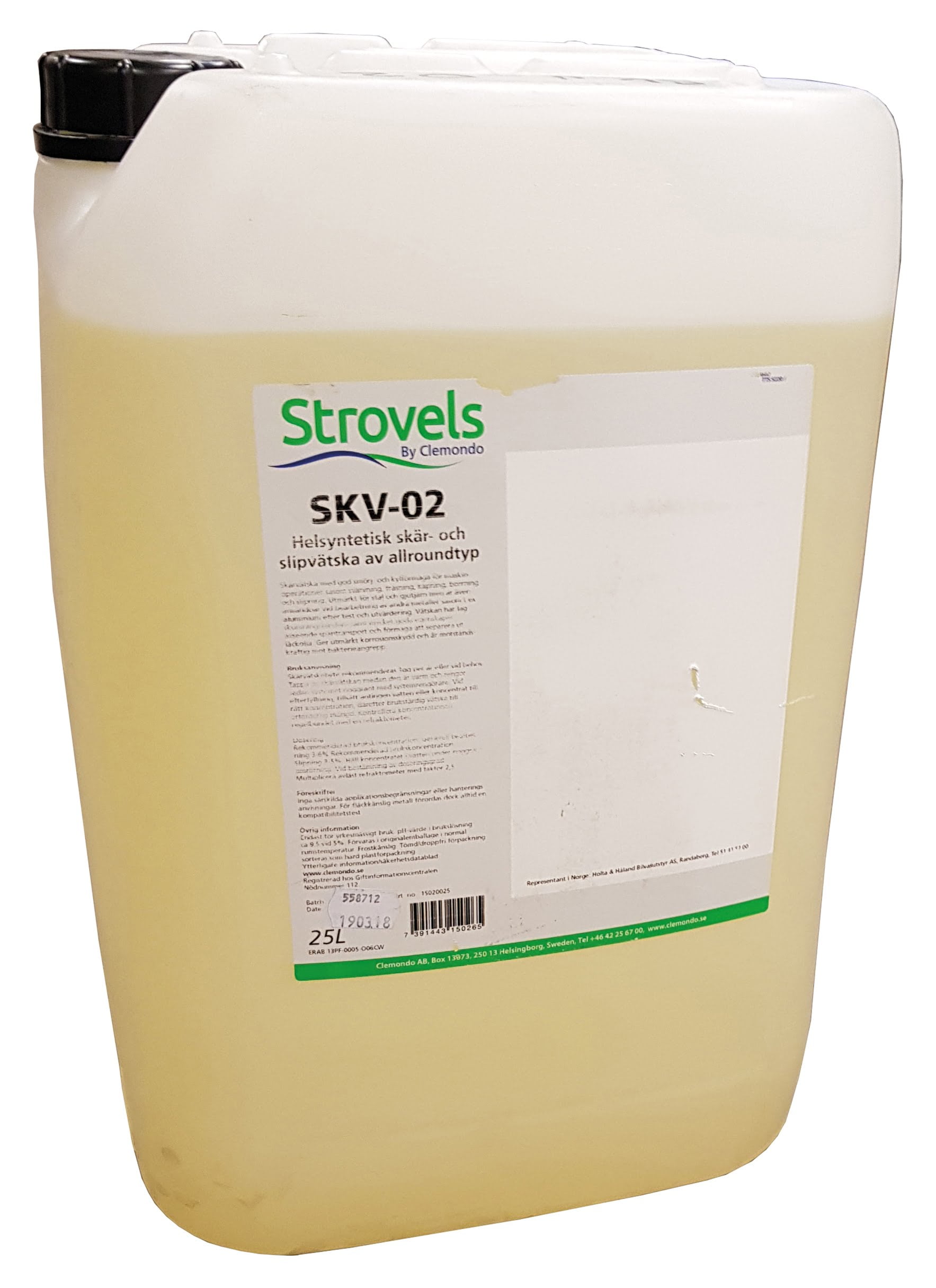 SKV-02 är en helsyntetisk, allround skärvätska. Produkten är fri från oljor och lösningsmedel. Detta gör att den inte löser in någon form av läckolja, till skillnad från produkter där mineral-, vegetabilisk– eller vitolja ingår.