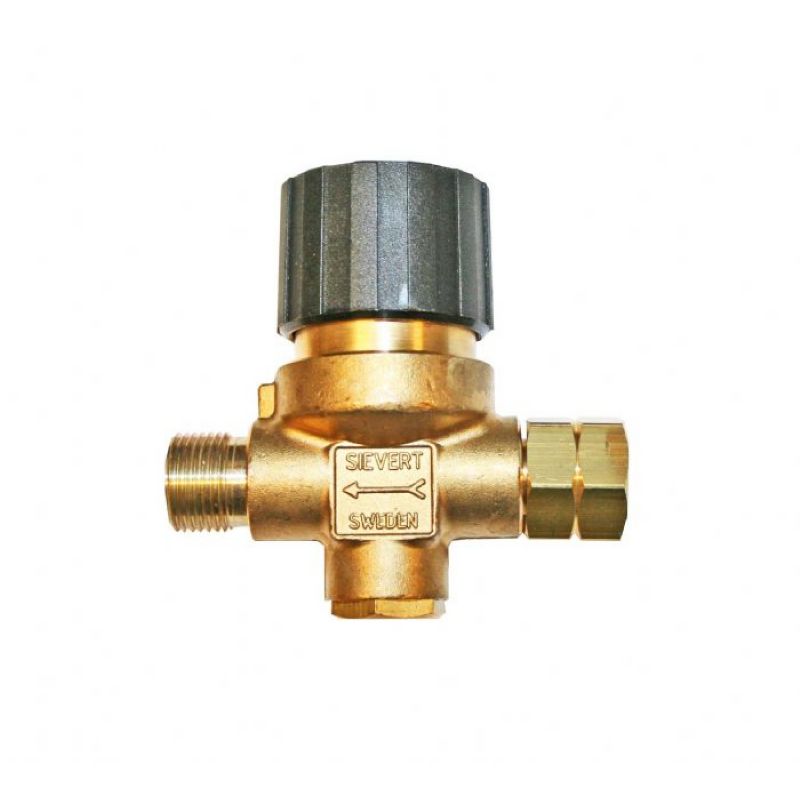 Ställbar reduceringsventil med högt tryck 1-4 bar. Redcueringen har ingen slangbrottsventil. Flöde: 5-20 kg/h.Kontrolleras vid varje byte av flaska så sprickor eller andra skador ej uppstått på reducerventilen,vid skada ska den bytas.